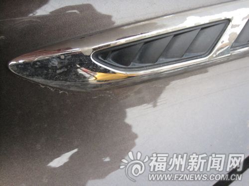 1日下午,記者見(jiàn)到了林先生。他告訴記者,這輛別克汽車(chē)是2012年5月份花50余萬(wàn)元在福州中機(jī)中泰汽車(chē)銷(xiāo)售有限公司購(gòu)買(mǎi)的,還沒(méi)到3個(gè)月,車(chē)上的電鍍配件就出現(xiàn)了褪色的現(xiàn)象。